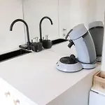 Zur Küchenausstattung gehören unter anderem eine Mikrowelle, eine Kaffee-/Teemaschine und ein Kühlschrank. Für einen bequemen und entspannenden Aufenthalt in diesem Apartment stehen den Gästen Ausstattung zur Kaffee- & Teezubereitung zur Verfügung.
